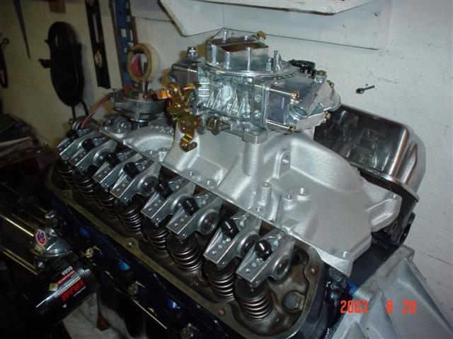 | engine internals ready to go | heads are done, now with heavy duty springs and roller rockers | new valve covers, intake and carb added |